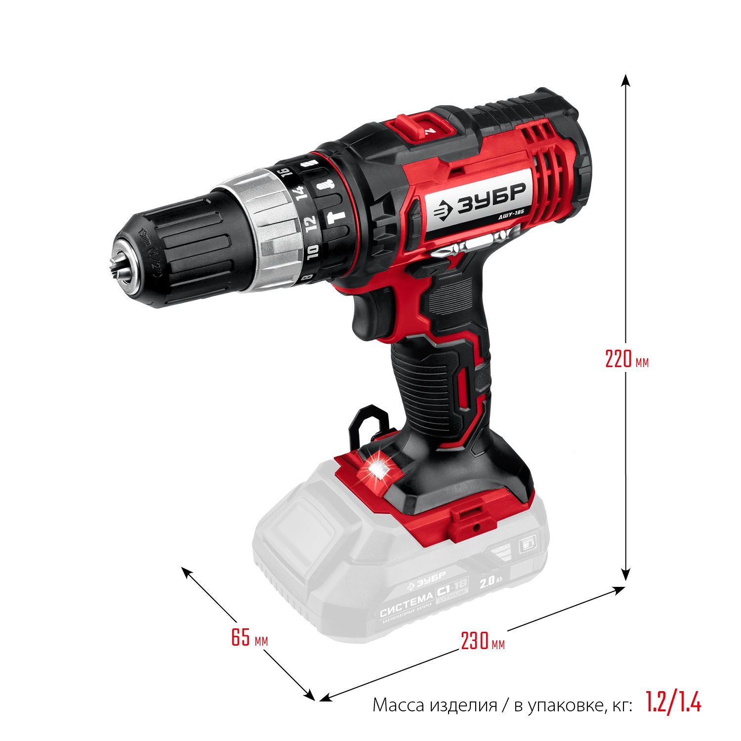 ДШУ185 ЗУБР С1-18, 18 В, 40 Н·м, без АКБ, ударная дрель-шуруповерт (ДШУ-185) Зубр