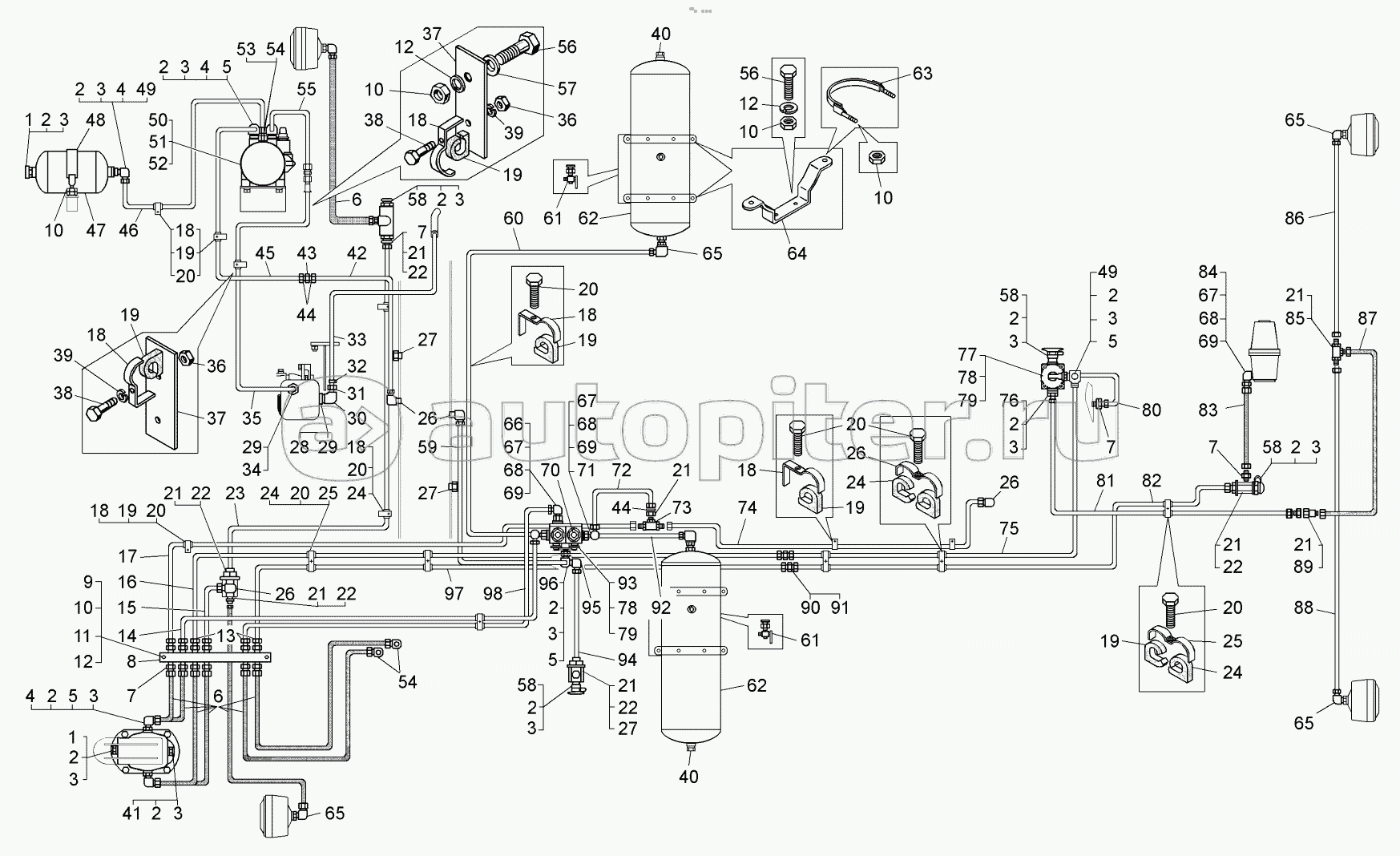 Монтаж пневматического привода тормозов (7540А-3500003-10, 7540В-3500003);Assembly of pneumatic brake drive