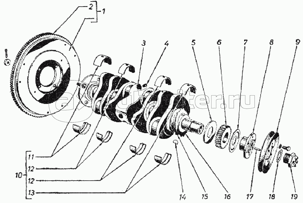 Коленчатый вал и маховик