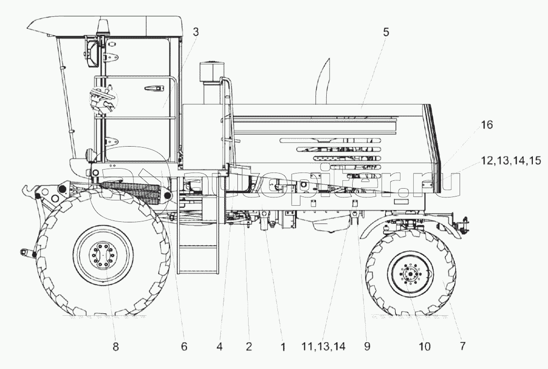 Косилка самоходная КС-100ШассиСиловая установкаКабинаУстановка капотовУстановка климатическая, оборудования кондиционера, компрессора, отопителя, испарителяГидросистемаУстановка опоры, бампера, лестницы, щитковУстановка электрооборудования