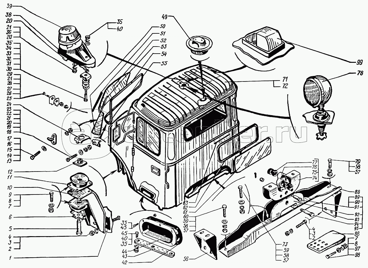 Кабина в сборе и крепление кабины
