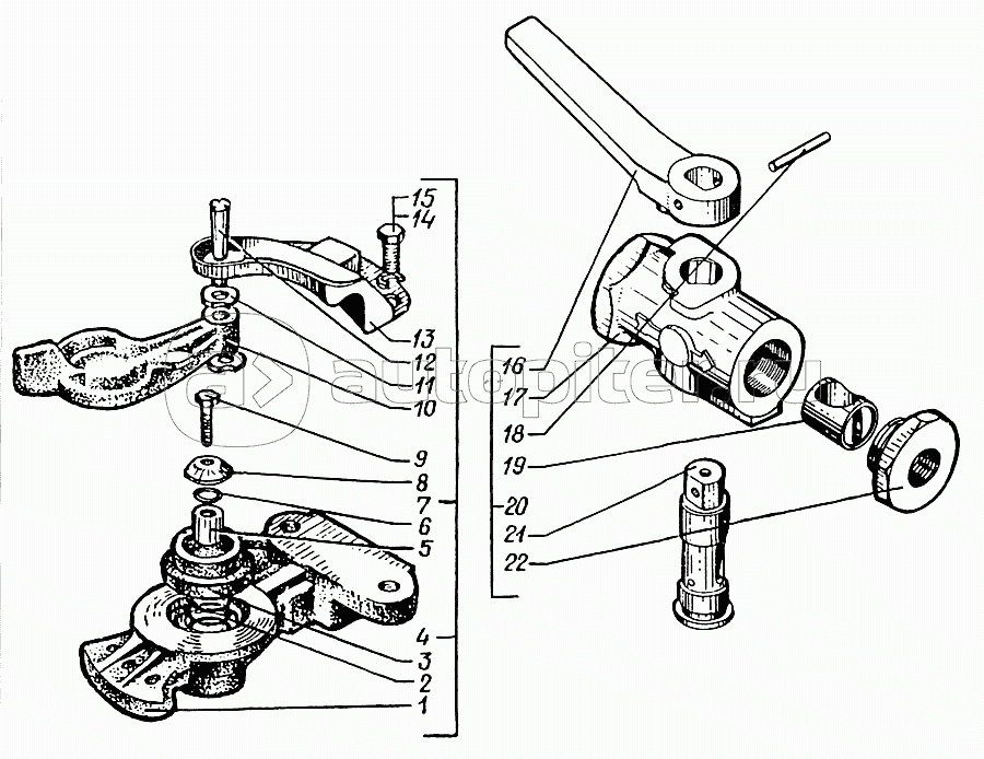 Кран тормозной двухсекционный с рычагом