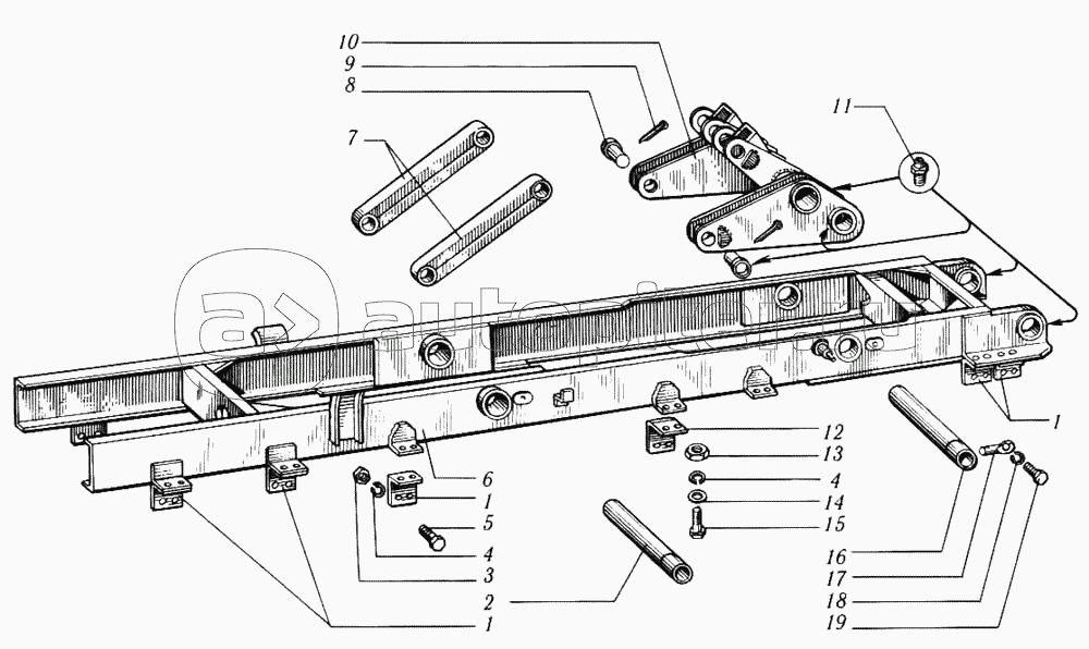 Надрамник и балансир двухцилиндрового опрокидывающего механизма