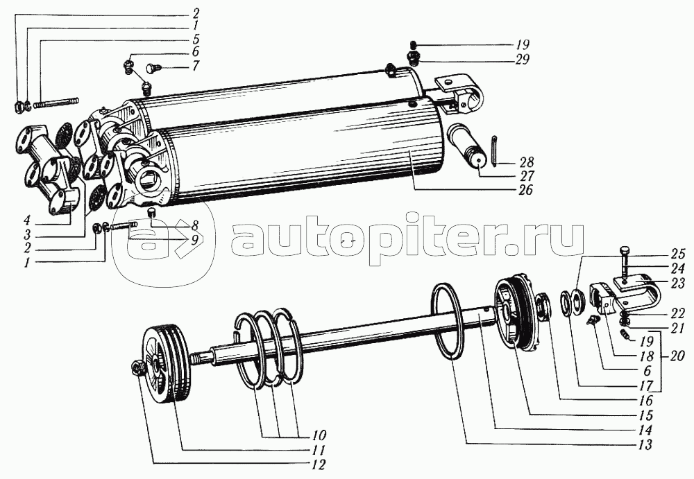 Карданный вал привода насоса двухцилиндрового опрокидывающего механизма