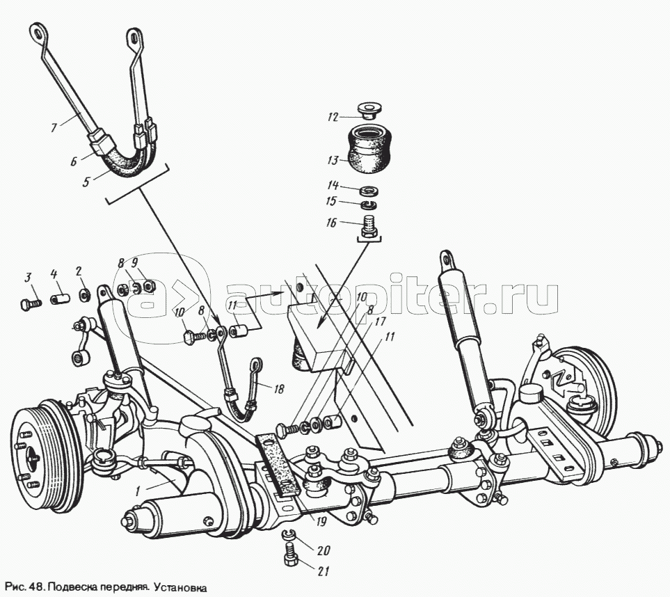 Рычаги, торсионы, амортизаторы, ось передней подвески