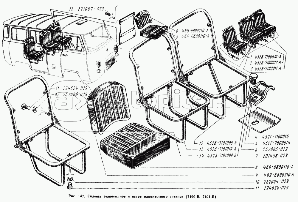 Сиденье одноместное в сборе, остов одноместного сиденья