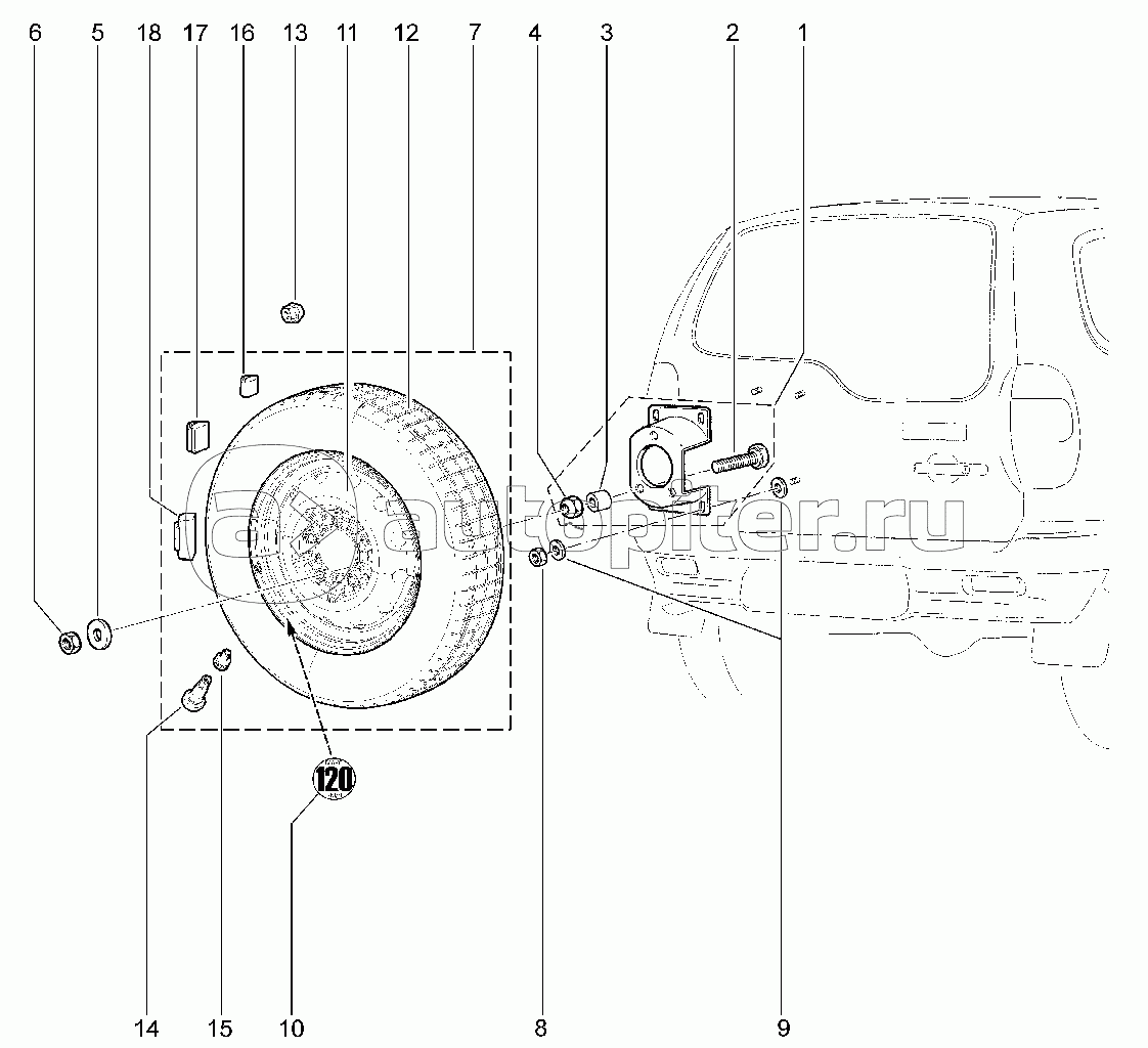 Держатель и запасное колесо (с 12.2020)