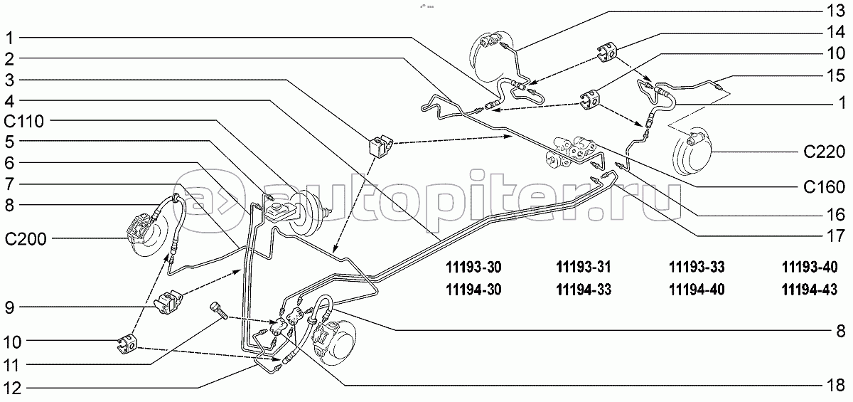 Элементы привода тормозов