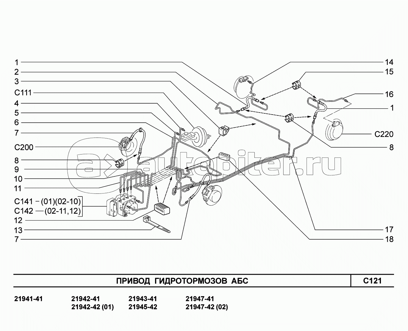 C111. Элементы привода тормозов