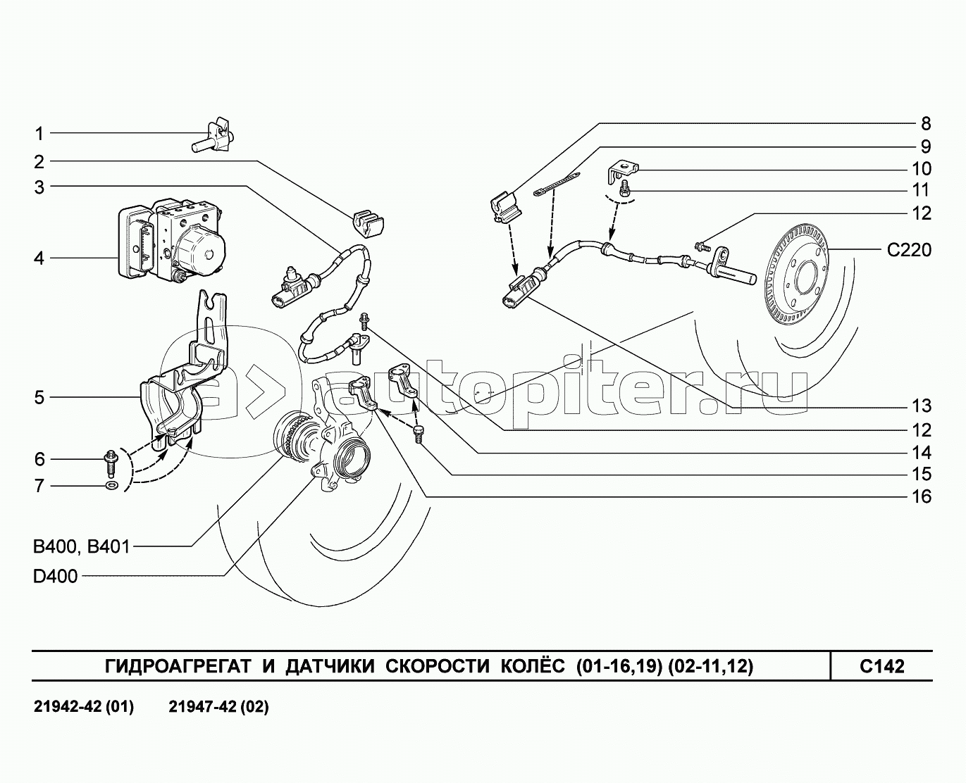 C142. Гидроагрегат и датчики скорости колес