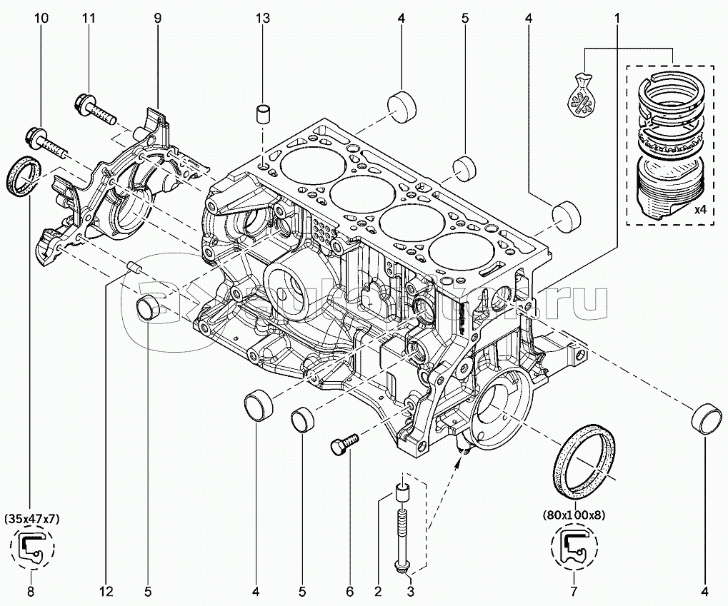 Двигатель (8 КЛ) (кольца, поршень)