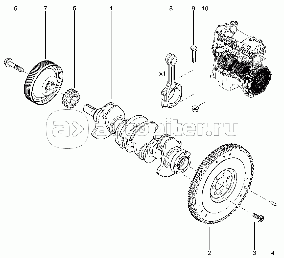 Коленвал, маховик, шатун (K4M)
