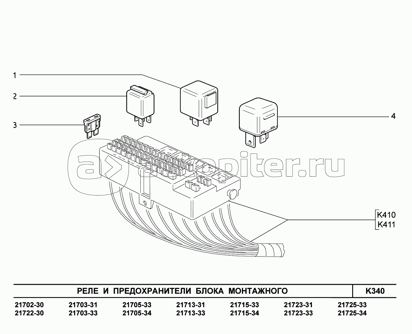 K340. Реле и предохранители блока монтажного