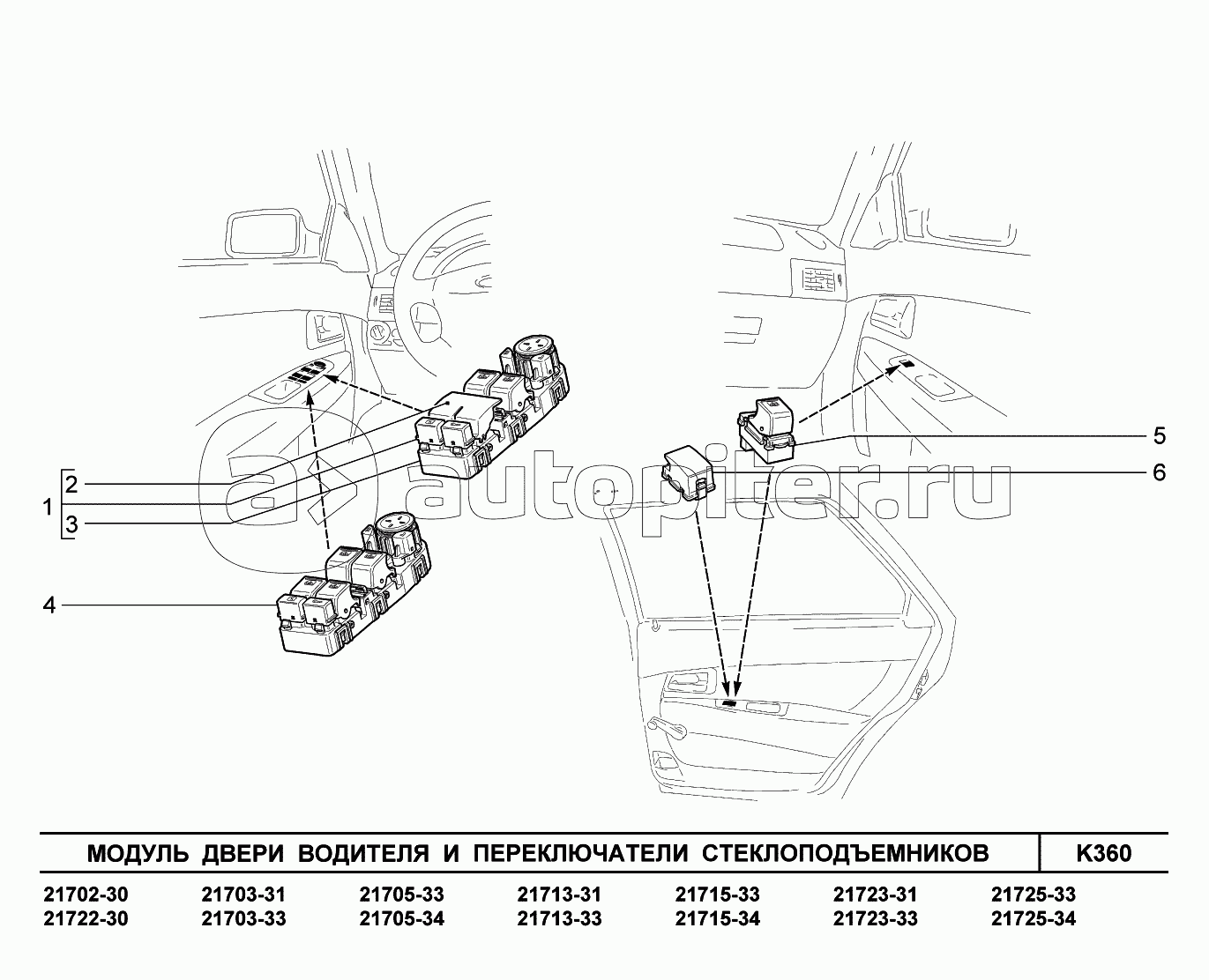 K360. Модуль двери водителя и переключатели стеклоподъемников