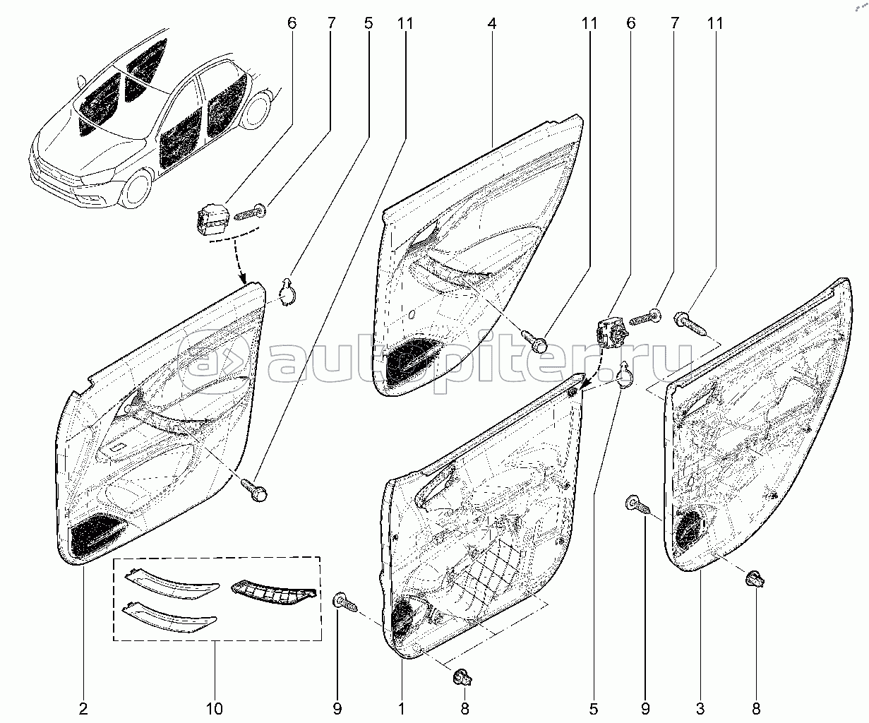 577110. Элементы обивок задних дверей