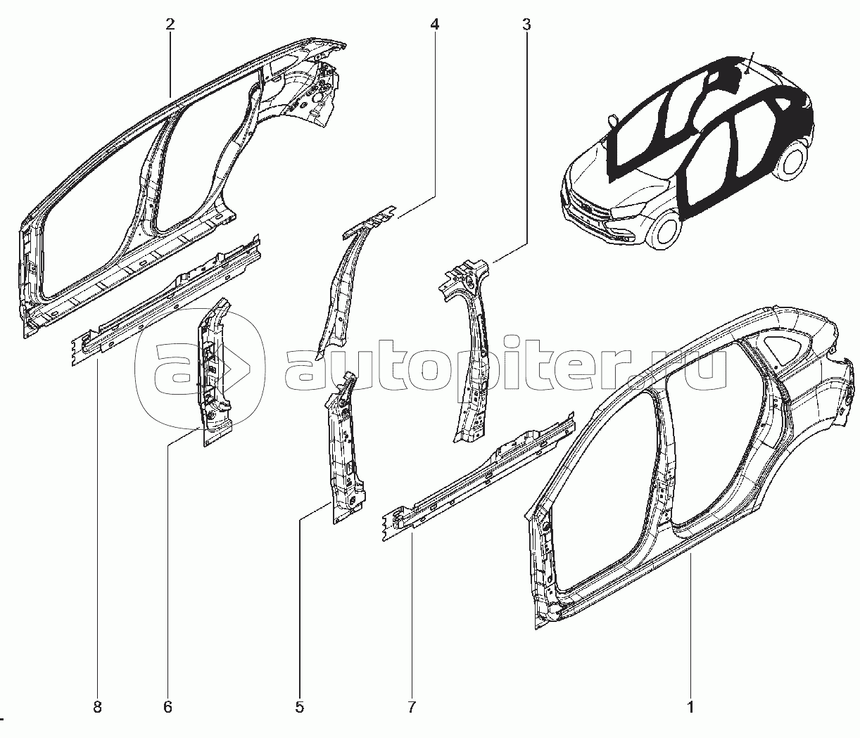 ДВИГАТЕЛЬ (ДВС в сборе, блок, коленвал, система смазки)ДВИГАТЕЛЬ (системы газораспределения и охлаждения)ДВИГАТЕЛЬ (системы впуска и выпуска)ФИЛЬТР ВОЗДУШНЫЙФИЛЬТР ВОЗДУШНЫЙКРОНШТЕЙН, ПРИВОД НАВЕСНОГО ОБОРУДОВАНИЯГЕНЕРАТОР, СТАРТЕРЗАЖИГАНИЕ, КОНТРОЛЛЕР, ДАТЧИКИ ДВИГАТЕЛЯРАДИАТОР, БАК ТОПЛИВНЫЙ, ГЛУШИТЕЛИСЦЕПЛЕНИЕКОРОБКА ПЕРЕКЛЮЧЕНИЯ ПЕРЕДАЧ (КПП)ПРИВОДА, ШРУСПОДВЕСКА ПЕРЕДНЯЯ (рычаги, ступица)СТОЙКИ И ТОРМОЗА ПЕРЕДНИЕПОДВЕСКА И БАРАБАН ЗАДНИЕПОДВЕСКА И БАРАБАН ЗАДНИЕДИСКИ И КОЛПАКИ КОЛЕСАРУЛЕВОЕ УПРАВЛЕНИЕПРИВОД ТОРМОЗОВ И СЦЕПЛЕНИЯРЫЧАГ КПП, РУЧНОЙ ТОРМОЗБРЫЗГОВИК В СБОРЕЭЛЕМЕНТЫ КУЗОВА НИЖНИЕЭЛЕМЕНТЫ КУЗОВА ПЕРЕДНИЕЭЛЕМЕНТЫ КУЗОВА БОКОВЫЕЭЛЕМЕНТЫ КУЗОВА ЗАДНИЕ ВНУТРЕННИЕПАНЕЛЬ КРЫШИКРЫЛЬЯ ПЕРЕДНИЕ, ЗАЩИТА КАРТЕРАДВЕРИ БОКОВЫЕКАПОТ, ДВЕРЬ ЗАДКАПЕТЛИ, ЗАМКИ ДВЕРЕЙ, СТЕКЛОПОДЪЕМНИКПРИВОД ОТКРЫТИЯ КАПОТА И ЗАДНЕЙ ДВЕРИЗАМОК (ЛИЧИНКА) ДВЕРИСТЕКЛАОБВЕС КУЗОВА ВНЕШНИЙ (бампера, щитки, молдинги)ЭМБЛЕМЫ, ЗЕРКАЛА, КРЕПЛЕНИЕ ЗАПАСКИПАНЕЛЬ ПРИБОРОВ, ПОДУШКА ПАССАЖИРА, ПЕПЕЛЬНИЦАКОЗЫРЕК ПРОТИВОСОЛНЕЧНЫЙ, ПОРУЧНИ, ОЧЕЧНИКРЕМНИ БЕЗОПАСНОСТИОТОПИТЕЛЬ, КЛИМАТ-СИСТЕМАКОМПРЕССОР КОНДИЦИОНЕРА, ТРУБКИЗАГЛУШКИ, УПЛОТНИТЕЛИ КАПОТАУПЛОТНИТЕЛИ ДВЕРЕЙУПЛОТНИТЕЛИ СТЕКОЛШУМОИЗОЛЯЦИЯКОВРОВОЕ ПОКРЫТИЕ САЛОНАНАКЛАДКИ САЛОНА, ОБИВКА КРЫШИОБИВКИ ДВЕРЕЙПОЛКА БАГАЖНИКАСИДЕНИЯ В СБОРЕ, ЧАСТИ ПЕРЕДНИХ СИДЕНИЙПОДУШКА, СПИНКА ПЕРЕДНИХ СИДЕНИЙПОДУШКА, СПИНКА ЗАДНИХ СИДЕНИЙПОДГОЛОВНИКИ СИДЕНИЙФАРЫ, ПРОТИВОТУМАНКИ, АКБФОНАРИ ЗАДНИЕ, ОСВЕЩЕНИЕ САЛОНА, БАГАЖНИКАСИГНАЛ, КЛЮЧ ЗАЖИГАНИЯ, КОЛЬЦО ИММОБИЛИЗАТОРАКОМБИНАЦИЯ ПРИБОРОВВЫКЛЮЧАТЕЛЬ ЗАЖИГАНИЯ, КЛЮЧИ, ПЕРЕКЛЮЧАТЕЛИСТЕКЛООЧИСТИТЕЛЬОМЫВАТЕЛЬ, АУДИО, МЕДИА-СИСТЕМА СИСТЕМА ПАРКОВКИКОНТРОЛЛЕР (ЦБКЭ), ЭЛ.ВЕНТИЛЯТОР РАДИАТОРАЖГУТЫ ПРОВОДОВИНСТРУМЕНТАКСЕССУАРЫ