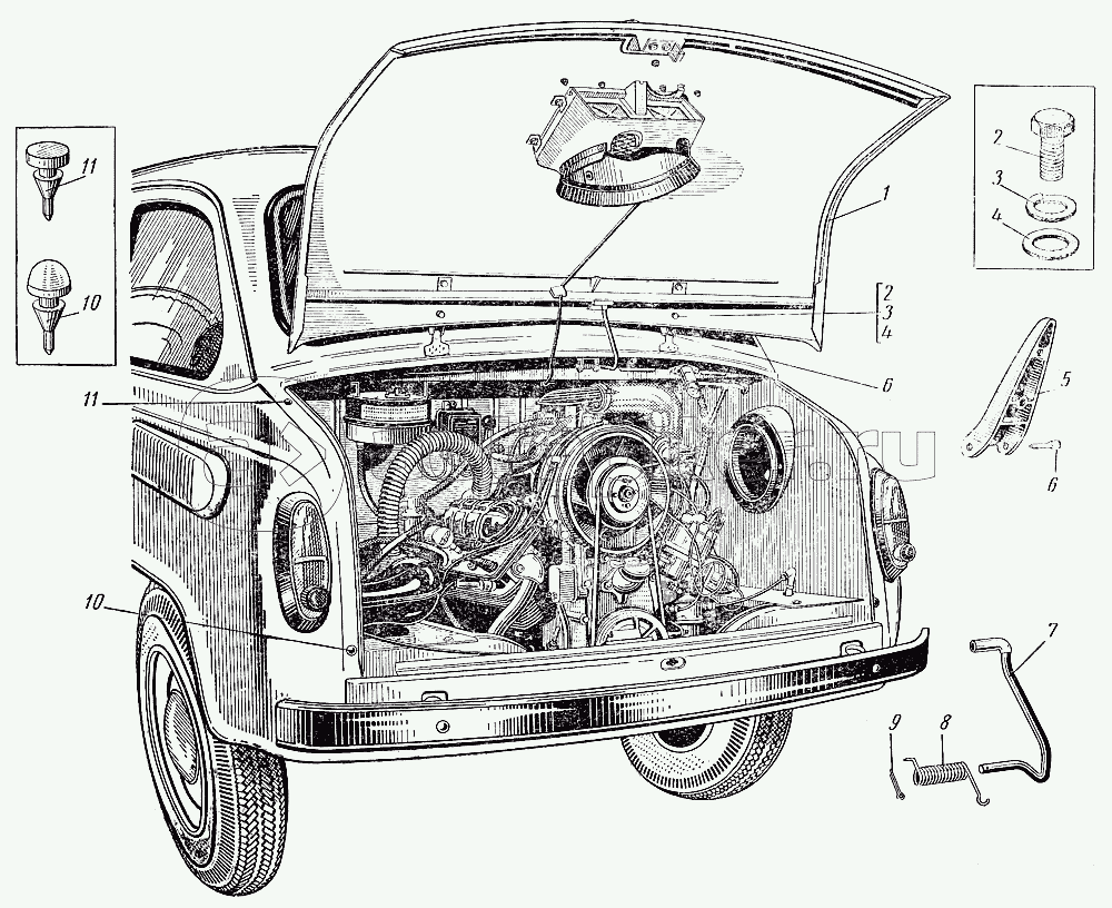 Капот задка, петли и упор